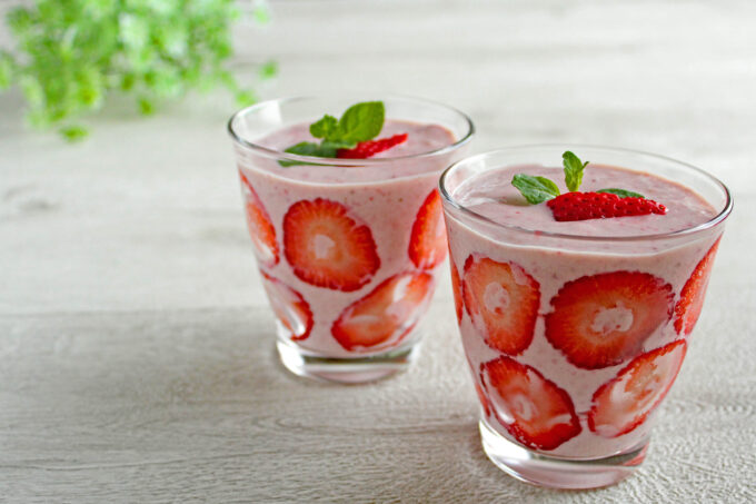 豆腐とフルーツをミキサーでなめらかに仕上げた軽やかなデザートです。ベリーの酸味とバナナの自然な甘みが重なり、冷たくて後味すっきりなヘルシーデザートをどうぞ。