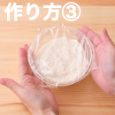 クッキングシートを敷いた耐熱皿に並べ、ふんわりとラップをかけて600Wの電子レンジで3分半〜4分加熱する。